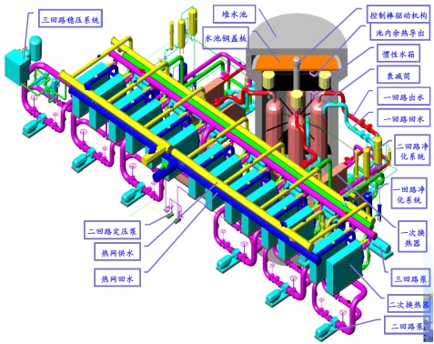 “燕龍”泳池式低溫供熱堆是中核集團在池式堆五十多年安全穩定運行的基礎上,針對北方地區清潔供暖需求,新開發的一種核能供熱技術產品,并于2017年11月在中國原子能科學研究院成功實現供熱,并通過168小時運行試驗。它作為城市清潔供熱的優選技術,具有安全、經濟、綠色環保的特點,得到了國家能源局等主管部門的大力支持,并已列入國家“北方地區冬季清潔取暖規劃(2017-2020年)”,目前正在積極推進示范工程。