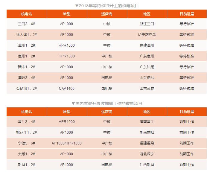 8臺為AP1000機型,包括陸豐核電1,2號機組、徐大堡核電1,2號機組、三門核電3,4號機組以及海陽核電3,4號機組;
