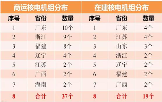 我國核電機組數量已進入世界前列,在建核電機組連續多年世界第一。截至到2017年12月31日,我國已投入商運核電廠共13個,機組共37臺,其中35個為壓水堆,2個為重水堆;在建核電廠共9個,機組共19臺,其中18個為壓水堆,1個為球床模塊式高溫氣冷堆(HTR-PM)。