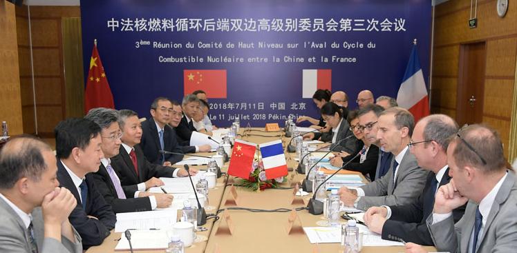 7月11日,中法核燃料循環后端雙邊高級別委員會第三次會議在北京召開,中國國家原子能機構主任張克儉和法國原子能與替代能源委員會主席弗朗索瓦·雅克共同主持會議。雙方回顧了中法核燃料循環后端領域合作進展,討論了下一步工作。