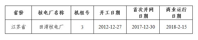 表1 2018年1-6月投入商運(yùn)的核電機(jī)組信息
