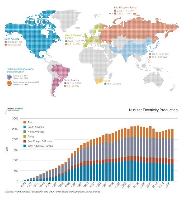 世界核新聞網2018年8月16日報道,根據世界核協會(WNA)最新公布的《2018年世界核實績報告》,2017年全球核發電量達到2506 TWh,連續第五年實現增長。該協會稱,核工業正沿著實現和諧計劃近期目標的軌道前進。