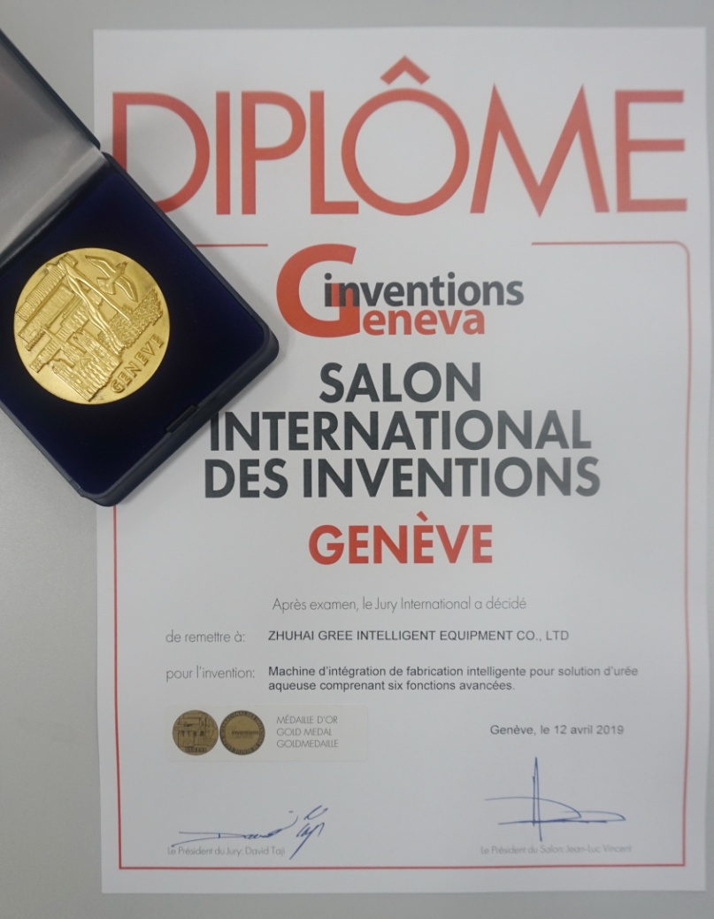 (圖為格力車用尿素水溶液智能制配一體機獲得金獎)