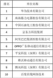 (圖為2018中國(guó)知識(shí)產(chǎn)權(quán)領(lǐng)域最具影響力創(chuàng)新主體榜單前十)