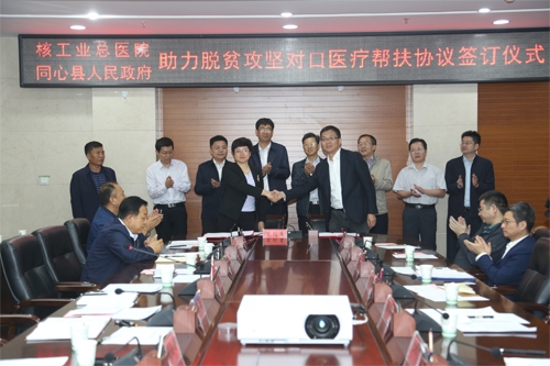據(jù)了解,精準(zhǔn)醫(yī)療扶貧是中核集團(tuán)在同心縣開展脫貧幫扶工作的重要內(nèi)容。針對(duì)當(dāng)?shù)爻R姴《喟l(fā)病,結(jié)合同心縣醫(yī)院實(shí)際需求,中核集團(tuán)統(tǒng)籌內(nèi)部醫(yī)療資源,進(jìn)行醫(yī)療捐助支持同心縣人民醫(yī)院建設(shè);從2018年開始,核工業(yè)總醫(yī)院每年派出三批醫(yī)療骨干駐院幫扶活動(dòng),每批三個(gè)月;組織專家周活動(dòng)和醫(yī)療下鄉(xiāng)活動(dòng),并圍繞醫(yī)院胸痛中心建設(shè)、卒中中心建設(shè)、信息化建設(shè)等相關(guān)重點(diǎn)學(xué)科建設(shè)開展了累計(jì)四百多人次的醫(yī)療人員專題培訓(xùn);此外,中核集團(tuán)還積極與同心縣人民醫(yī)院探索開展互聯(lián)網(wǎng)+醫(yī)療遠(yuǎn)程會(huì)診服務(wù),讓同心縣人民共享更好的醫(yī)療資源。
