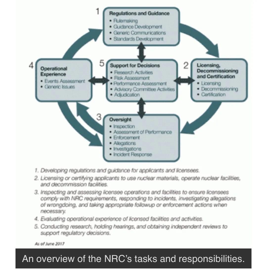 當然,NRC的任務也包括應對當前事件。比如2011年時,日本東海岸發生大規模海嘯和地震,導致福島第一核電站發生事故。雖然日本國會(調查該事件的委員會)得出的結論是這是人為事故,導致了負責這個核電廠的東京電力公司(TEPCO)被國有化,但NRC還是采取了措施,以確保從這一事故中吸取的所有教訓都將應用于美國所有反應堆,無論是已有的還是要建造的。