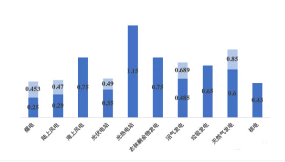 2020年,各種類型發(fā)電項目的電價如下圖所示。