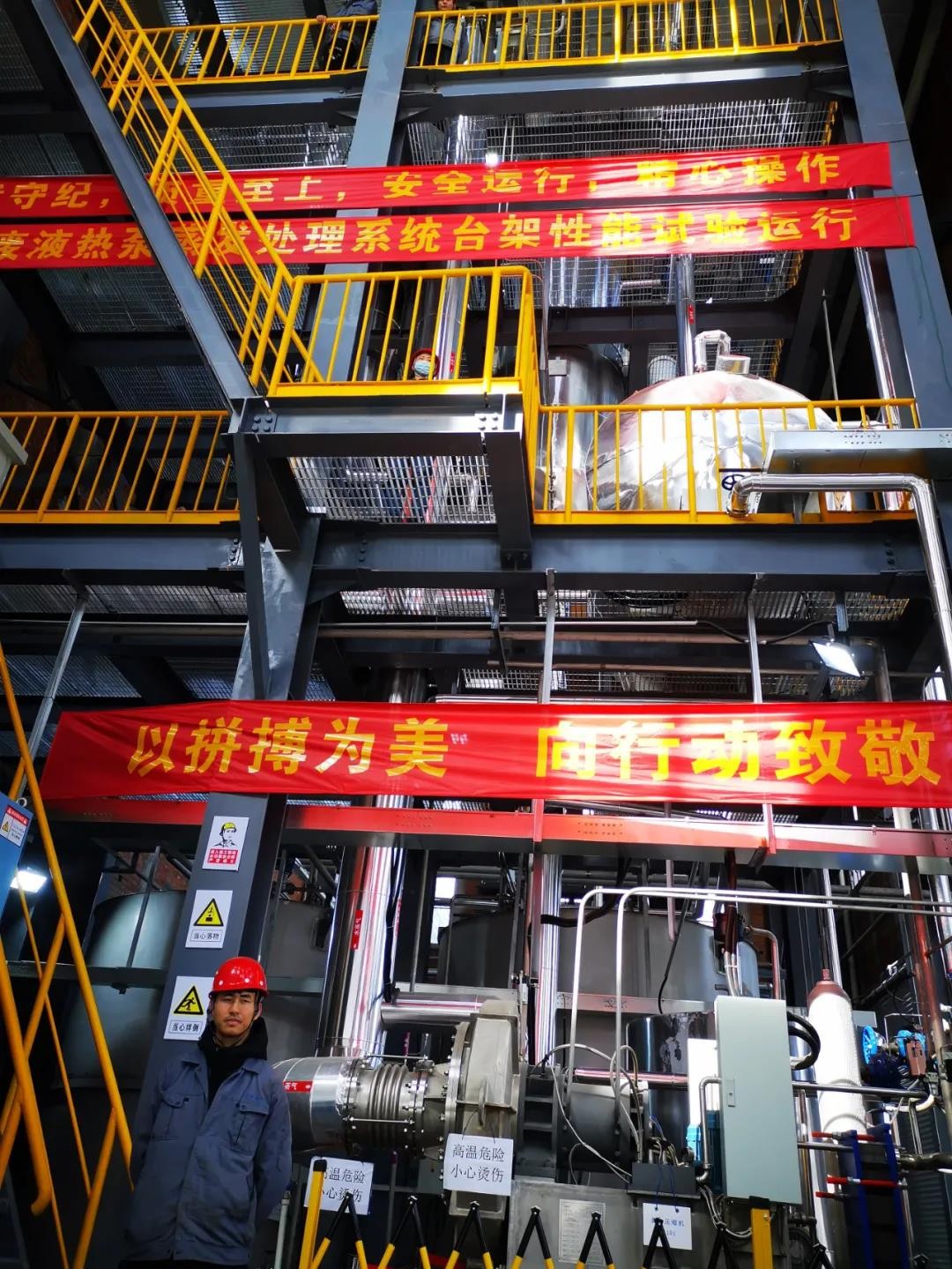 自從接到供貨任務以來,原子能院退役治理工程技術中心發揚“三牛精神”,主動擔當,成立專項工作組,加強組織協調,以披荊斬棘的魄力火速推動各項工作,完成了高達18米的熱泵系統建造,取得了關鍵技術指標的重大突破,首次實現了熱泵技術在放射性廢液處理領域的設備供應國產化。