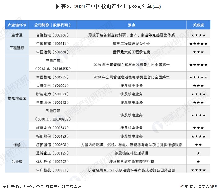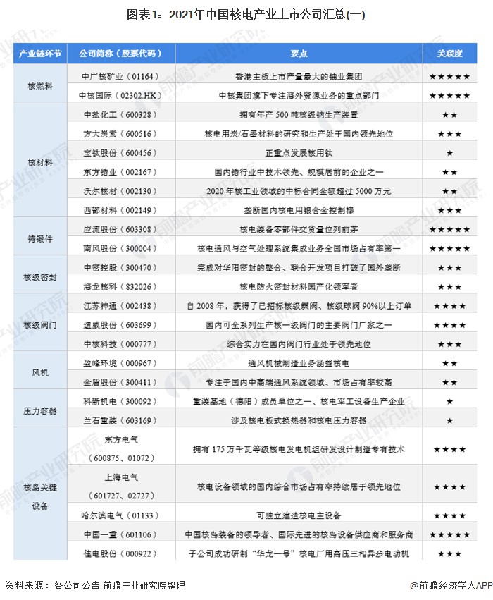 1、核電產(chǎn)業(yè)上市公司匯總