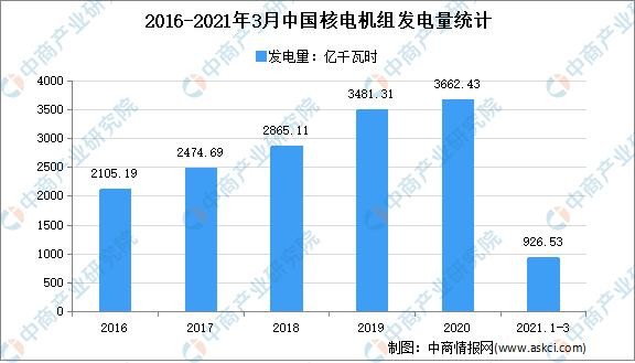 2021年1-3月全國累計發電量為19051.5億千瓦時,運行核電機組累計發電量為926.53億千瓦時,占全國累計發電量的4.86%。與燃煤發電相比,核能發電相當于減少燃燒標準煤2558.47萬噸,減少排放二氧化碳6703.19萬噸,減少排放二氧化硫21.75萬噸,減少排放氮氧化物18.93萬噸。