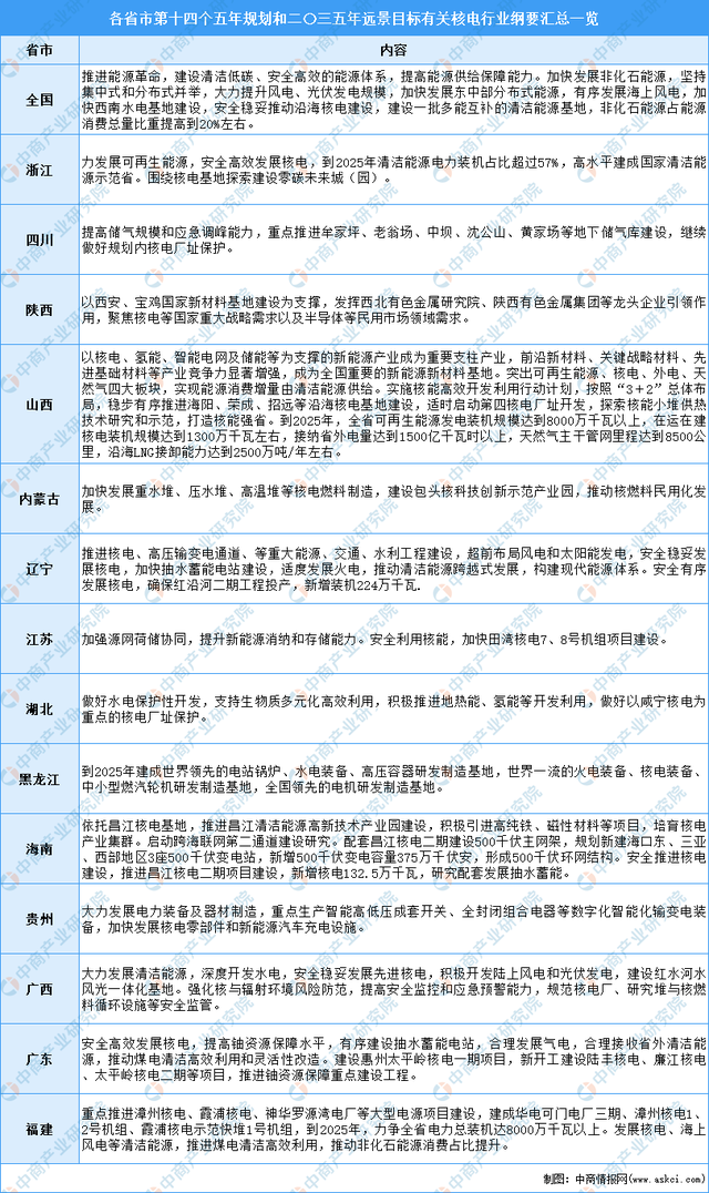 全國各地積極促進核電行業發展,中商產業研究院整理了全國各省市“十四五”發展規劃建議/綱要中有關核電行業發展相關內容,以供參考: