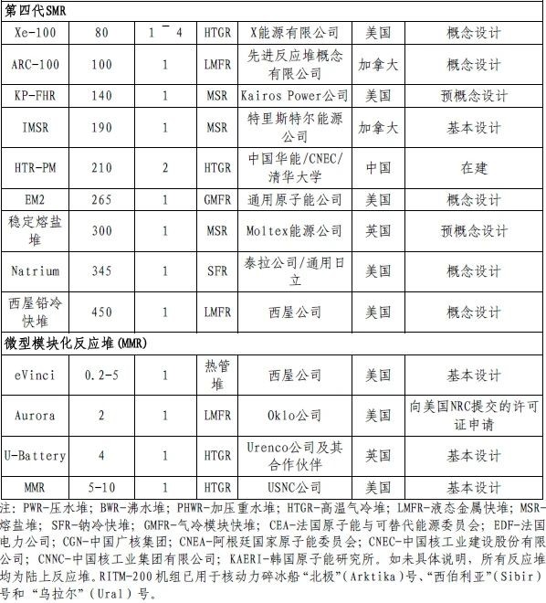 目前,至少有72個SMR概念正處于不同的開發階段(IAEA,2020年),較2018年增加了40%(IAEA,2018年)。表1列舉了國際上處于開發階段的代表性SMR,其中大約一半的設計概念基于LWR技術,另一半基于第四代概念。雖然“SMR”一詞在世界各地被用來指所有小型反應堆設計,但主要類型的SMR之間仍存在顯著差異,特別是在設計模塊化程度方面。