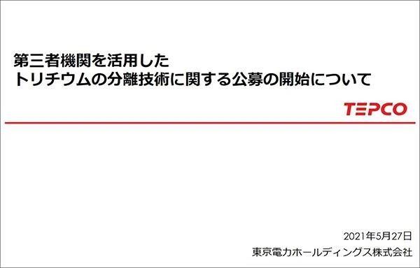 東電“求除氚技術”公告 圖自東電網站