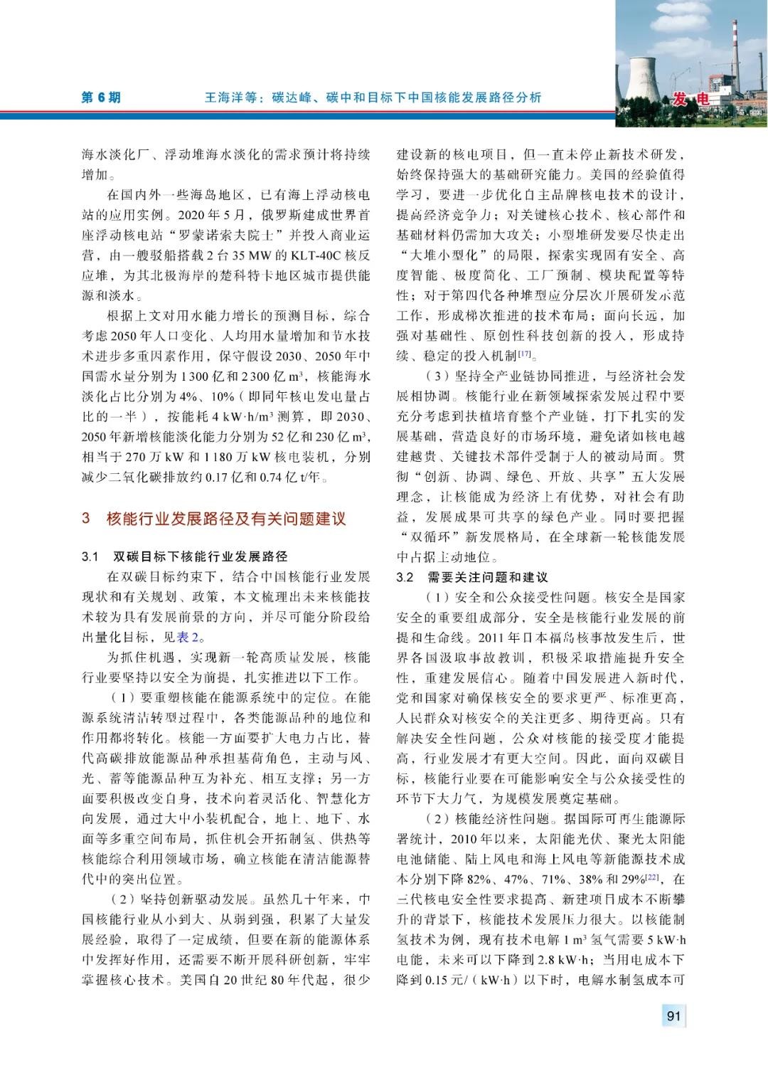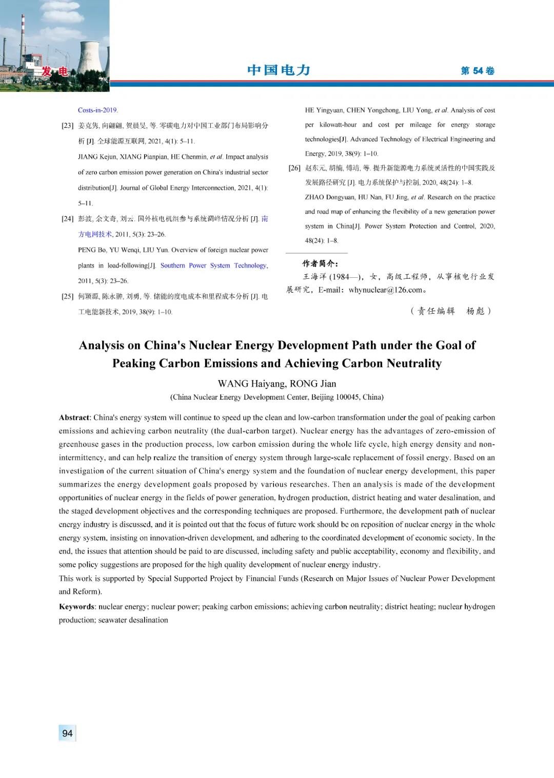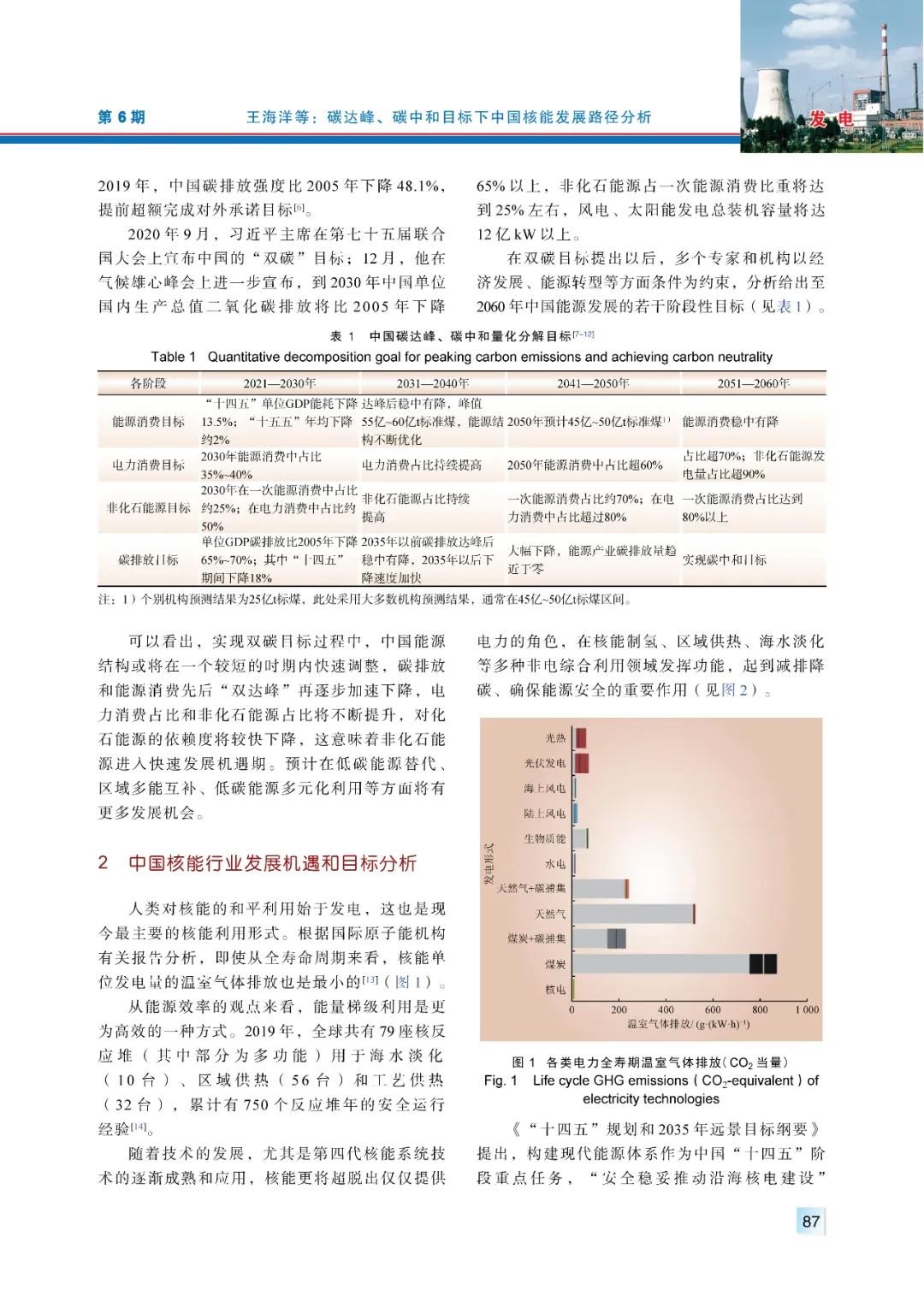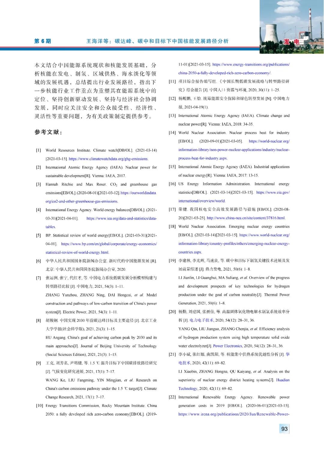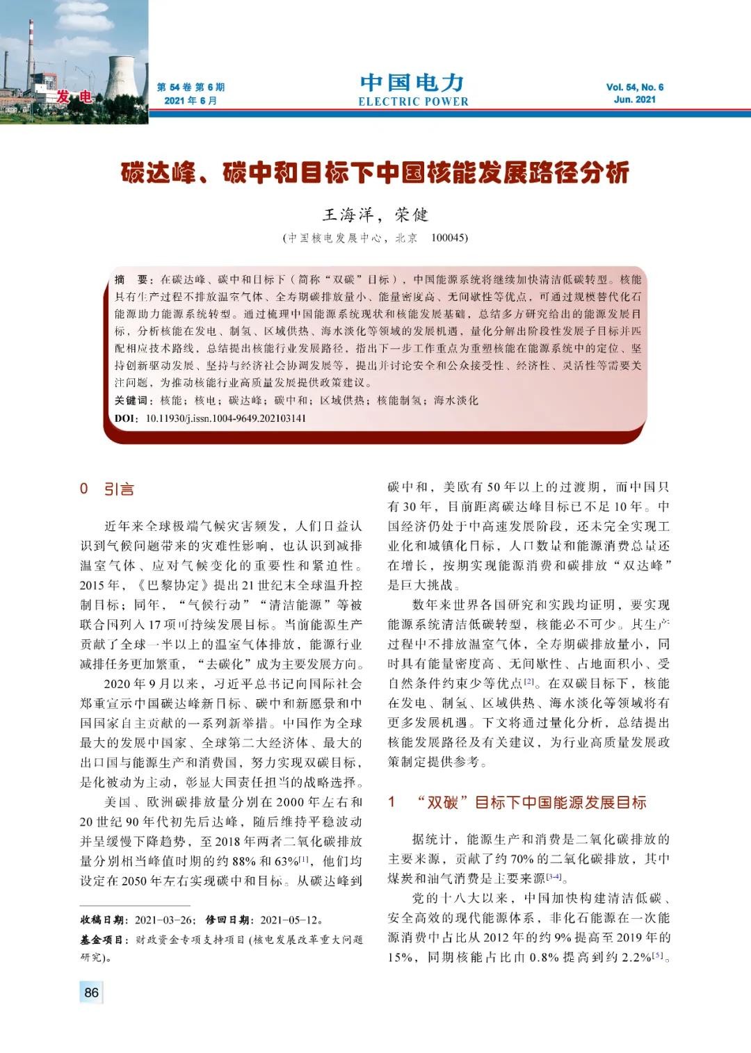 王海洋, 榮健. 碳達峰、碳中和目標下中國核能發展路徑分析[J]. 中國電力, 2021, 54(6): 86-94.