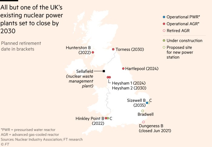 其中五座 AGR 工廠將在未來三年內(nèi)關(guān)閉,從目前 8.9GW 的核能裝機容量中減少 5.2GW 以上,占英國總發(fā)電量的不到五分之一。只有一個新工廠正在建設(shè)中,即位于薩默塞特的 3.2GW Hinkley Point C,該工廠建成后將為 600 萬戶家庭提供電力。