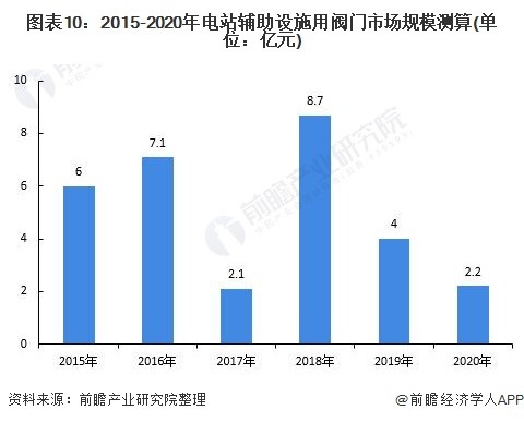 根據公開資料,在核電站固定資產投資中核電設備投資占50%左右,是核電投資最主要的環節。其中,核島設備占核電設備投資的46%。結合核島閥門占核島設備投資12%的比例,測算出2020年中國核島閥門市場規模為10.1億元。
