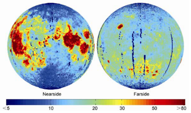 基于遙感數據估算的月壤氦-3豐度分布圖(單位:ppb/m2)