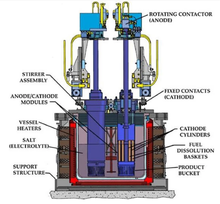 電解精煉工藝有助于降低先進堆核燃料的成本。熱堆利用燃料的一小部分能量,而快堆與電精煉相結合,可以釋放燃料中剩余的、未開發能量,同時減少廢料的體積和放射性的壽期。