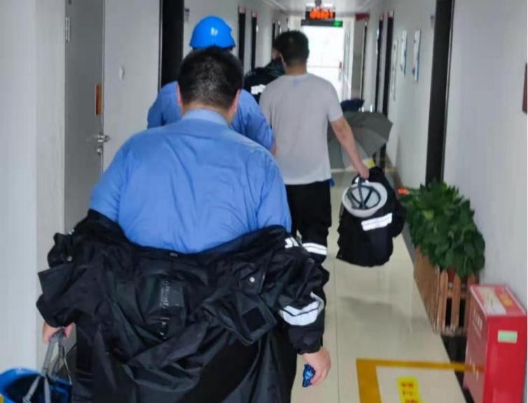 △對生產現場進行防汛抗臺隱患專項檢查,工作人員整裝待命,并開展緊急消缺工作。