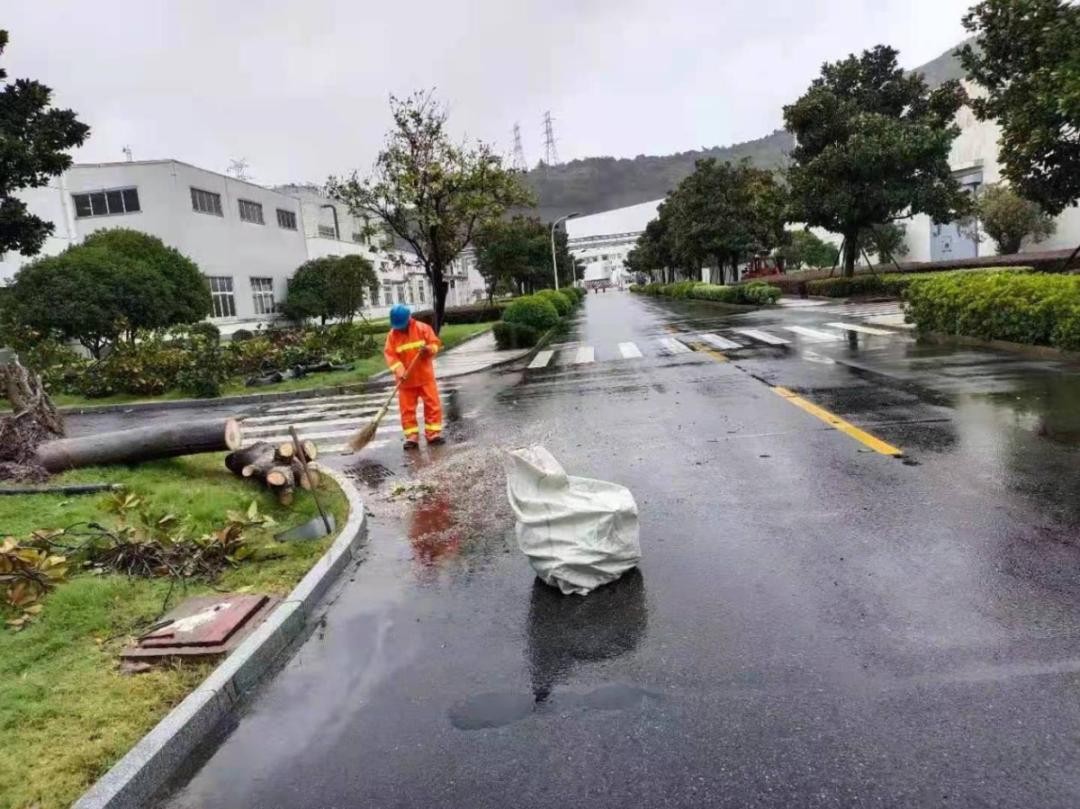 △秦一廠廠區有樹木倒塌阻塞了交通,已及時切割,清理完畢。