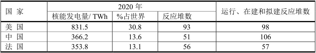 核能發電是解決2050年全球達到二氧化碳排放為零的重要支柱。20世紀60年代中國核能發電量為零,到1993年中國核能發電才開始有1.6TWh,占全球總量的0.007%;根據BP2021年報告,到2020年中國核能發電量達到366.2 TWh,占全球總量的13.6%。2020年中國居世界第二位,僅次于美國30.8%。但是中國運行、在建和擬建反應堆數將超過美國。