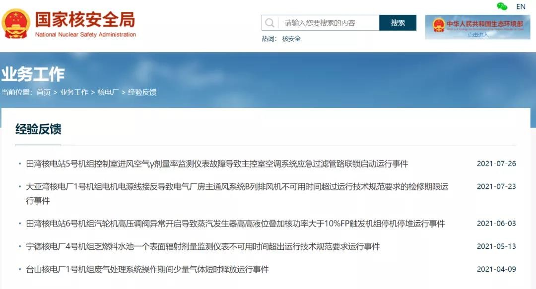 科普點(diǎn):什么是0級(jí)運(yùn)行事件所謂核電站大家擔(dān)心的那些事情,一般分為1-7級(jí),但是為了提高運(yùn)營(yíng)的安全意識(shí),才有了0級(jí)運(yùn)行事件這個(gè)說(shuō)法,把一些沒(méi)法納入分級(jí),但是需要注意的事情,通過(guò)公開(kāi)透明的官方渠道,進(jìn)行對(duì)外公布,這些0級(jí)運(yùn)行事件也變成了圖中核安全局官網(wǎng)經(jīng)驗(yàn)反饋版塊的主要內(nèi)容。