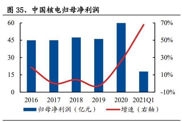 2020 年,公司實現營業收入 522.76 億元,同比+10.61%,近 5 年復合增速 14.81%; 實現歸母凈利潤 59.95 億元,同比+26.02%,近 5 年復合增速 9.66%;公司 2020 年核電發電量 1,483.36 億千瓦時,同比增長 8.9%。