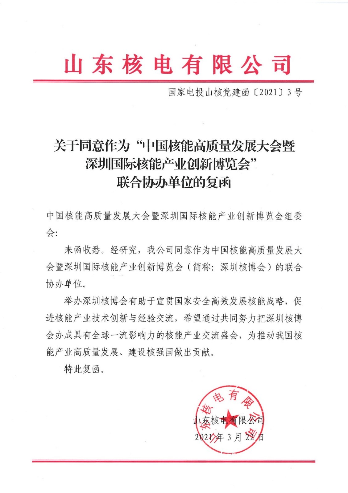 為推動我國核能產(chǎn)業(yè)高質(zhì)量發(fā)展、建設(shè)核強國做出貢獻(xiàn),山東核電有限公司(以下簡稱“山東核電”)同意作為深圳核博會聯(lián)合協(xié)辦單位。