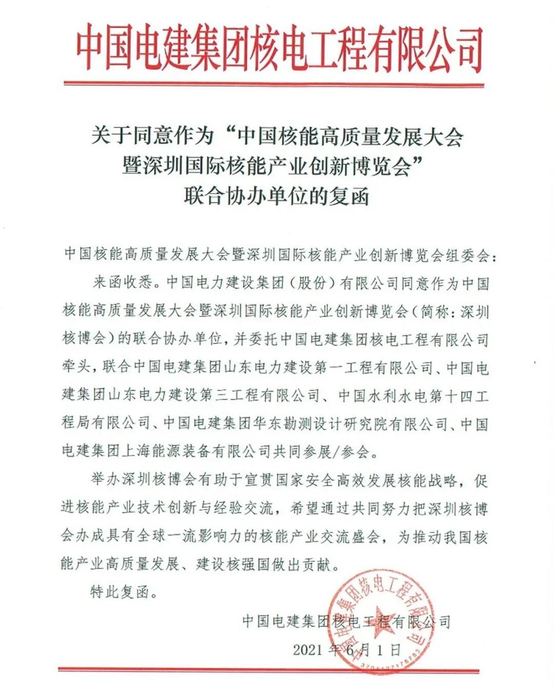深圳核博會致力于打造具有全球一流影響力的核能產業交流盛會,為推動我國核能產業高質量發展、建設核強國做出貢獻,中國電力建設集團(股份)有限公司(以下簡稱“中國電建”)同意作深圳核博會的聯合協辦單位,并委托旗下多家單位參展、參會。