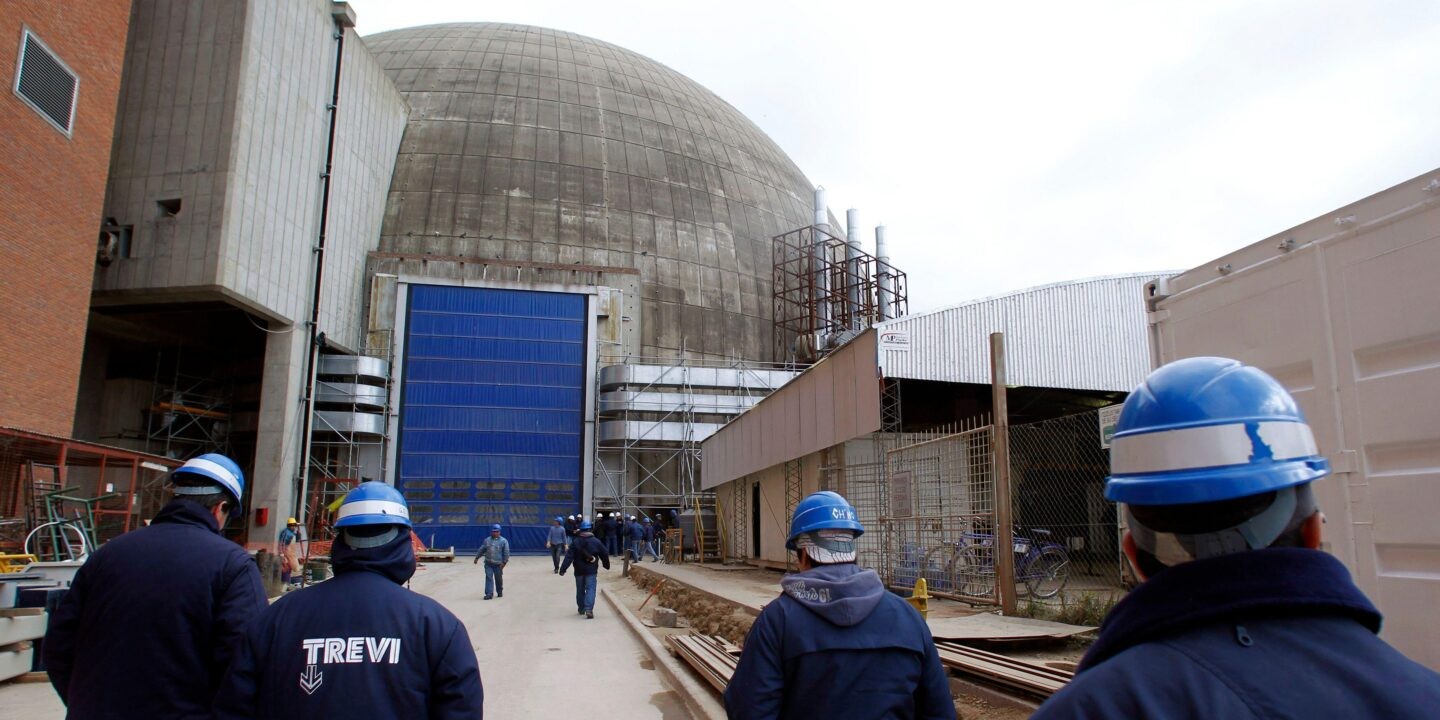 員工走向位于布宜諾斯艾利斯以北約 100 公里的 Zarate 的 Atucha II 核電站的反應(yīng)堆。新核電站將建在同一個綜合設(shè)施中(圖片 Alamy)