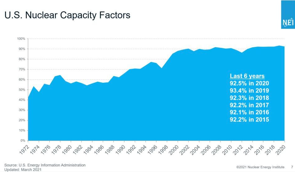你甚至可以從時(shí)間軸上看到它的趨勢(shì)。眾所周知,核能是迄今為止所有其他能源中容量系數(shù)最高的能源,但情況并非總是如此(見上圖)。實(shí)現(xiàn)這一目標(biāo)需要持續(xù)的時(shí)間和努力以及政府對(duì)研發(fā)的投資。