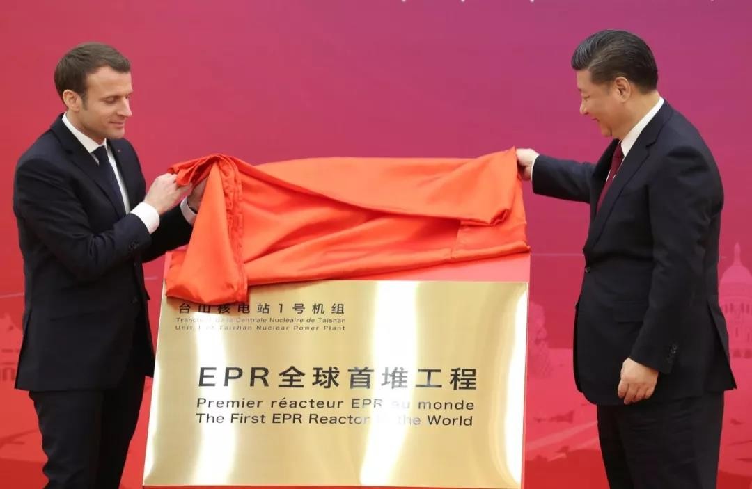 2018年1月9日,國家主席習近平和法國總統(tǒng)馬克龍在北京人民大會堂共同為臺山核電站1號機組成為EPR全球首堆工程揭牌。