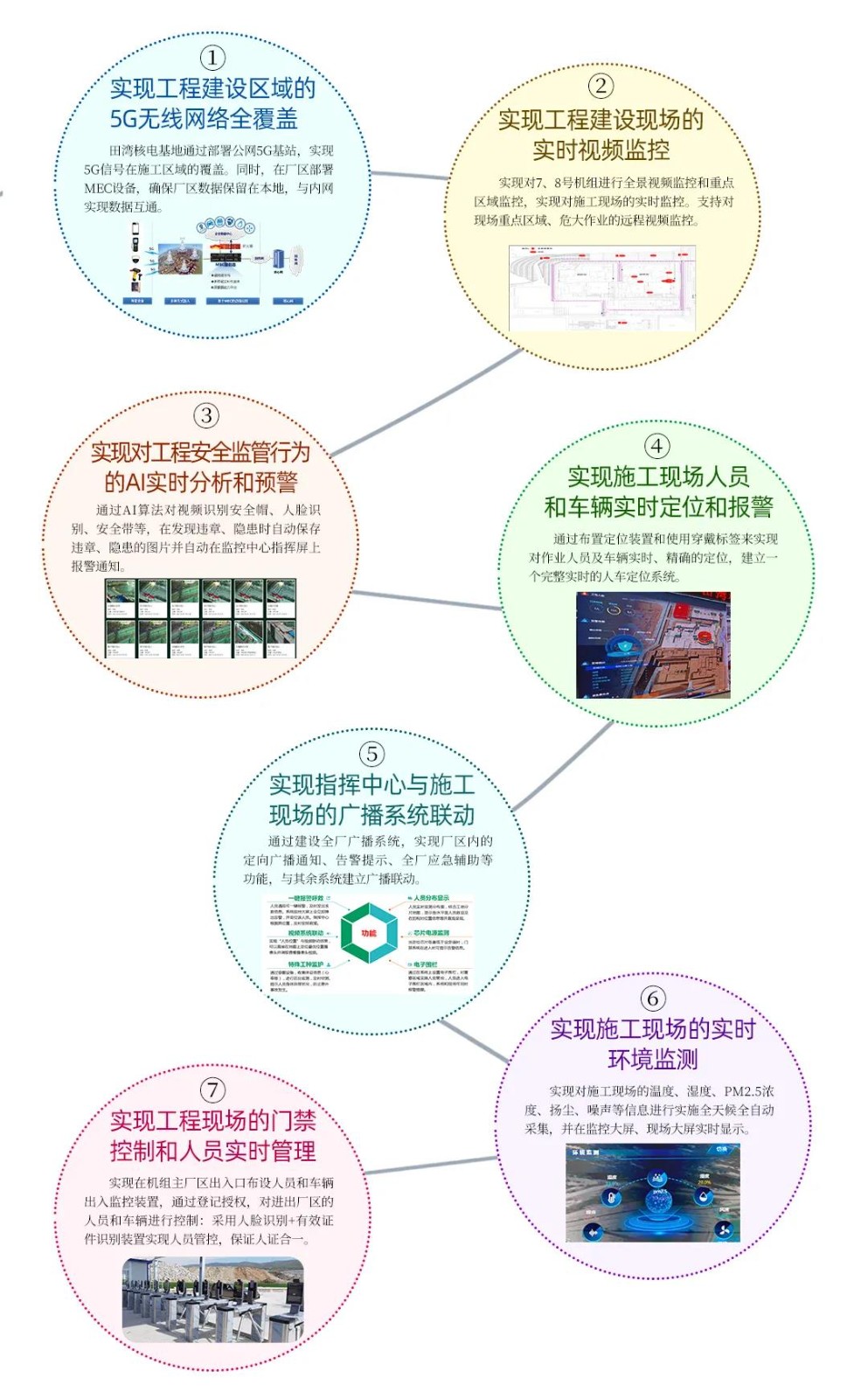 作為目前核電工程領(lǐng)域數(shù)字化轉(zhuǎn)型的典型應(yīng)用,田灣核電站智慧工地管理系統(tǒng)(一期)將計算機(jī)技術(shù)與物聯(lián)網(wǎng)應(yīng)用相結(jié)合,率先在業(yè)內(nèi)投用5G+MEC、北斗+藍(lán)牙定位、AI視覺智能分析技術(shù),實現(xiàn)對現(xiàn)場施工人員、車輛、設(shè)備的實時監(jiān)測,通過AI技術(shù)對人員或環(huán)境的不安全行為或狀態(tài)進(jìn)行自動識別,實現(xiàn)自動化監(jiān)管設(shè)施聯(lián)合動作,變被動式管理為主動式智能化管理,有效提高了田灣核電7、8號機(jī)組施工現(xiàn)場的安全管理水平和工程管理效率。