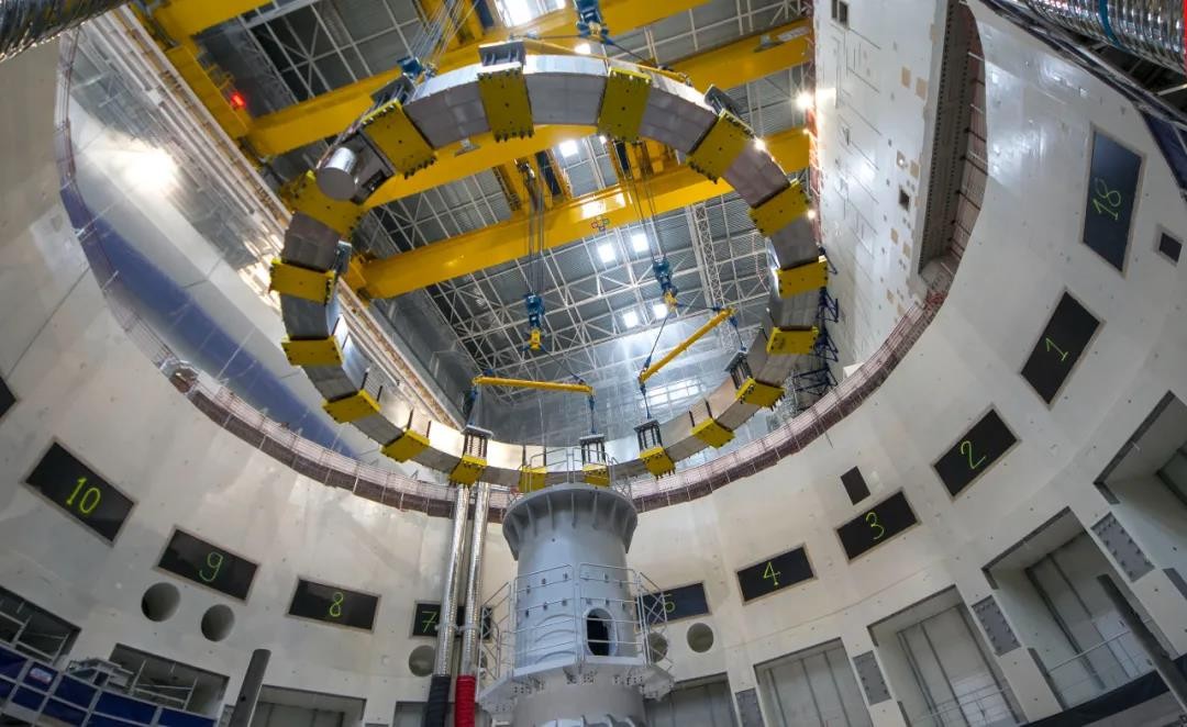 當地時間9月16日,在法國南部卡達拉舍,“人造太陽”國際熱核聚變實驗堆(ITER)托卡馬克裝置的最后一個下部主要磁體部件——極向場超導線圈PF5成功落位,標志著ITER項目主機安裝第一階段最后的里程碑完成,為第二階段真空室安裝創造了關鍵條件,這是由中核集團牽頭組成的中法聯合體在法國ITER現場啃下的又一塊“硬骨頭”,有力推進了ITER項目進展。