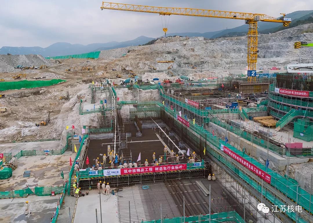 2021年9月19日上午9時19分,隨著江蘇核電總經理、黨委副書記張毅下達“開工”指令,中核集團田灣核電7號機組常規島汽輪發電機廠房筏基底板澆筑第一罐混凝土,比計劃提前1個月實現常規島正式開工,標志著7號機組建設序幕全面拉開。