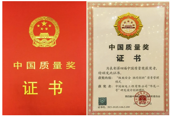 9月16日上午,在中國質(zhì)量獎(杭州)大會上,第四屆中國質(zhì)量獎評選結(jié)果正式揭曉,中核集團中國核電工程有限公司華龍一號研發(fā)設(shè)計創(chuàng)新團隊“極致安全 協(xié)同創(chuàng)新”質(zhì)量管理模式實現(xiàn)核行業(yè)的突破,喜獲2021年第四屆中國質(zhì)量獎。中核工程黨委書記、董事長徐鵬飛領(lǐng)取獎牌并作獲獎經(jīng)驗交流。