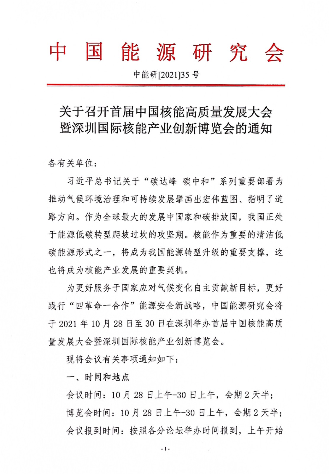 關于召開中國核能高質量發展大會暨深圳國際核能產業創新博覽會的通知