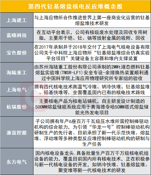 第四代釷基熔鹽核電反應(yīng)堆概念股如下: