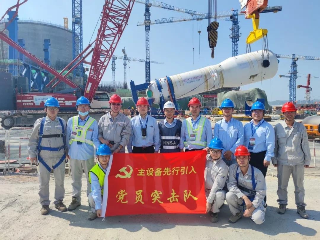 核島主設(shè)備先行引入法施工,是在穹頂?shù)跹b前,采用大型履帶吊將主設(shè)備(包括壓力容器、蒸發(fā)器、主泵泵殼、穩(wěn)壓器,以及設(shè)備就位前所需支撐)引入反應(yīng)堆廠房,改變以往核電機組傳統(tǒng)的先土建后安裝的順序施工模式,轉(zhuǎn)變?yōu)橥两?、安裝平行施工模式,與常規(guī)方法相比在主回路關(guān)鍵路徑上節(jié)省等待環(huán)吊可用的時間,從而使主回路的安裝工作提前開始,可大幅節(jié)約核電項目的施工工期。漳州核電項目管理大團隊為確保核島主設(shè)備先行引入工作順利推進,成立了主設(shè)備先行引入專項小組,聯(lián)合中核工程、中核咨詢、中核二三等相關(guān)單位,以周、日例會機制第一時間協(xié)調(diào)解決了工程推進中遇到的各種制約問題。同時以黨建為引領(lǐng),成立主設(shè)備先行引入黨員突擊隊,以黨員為骨干力量,夜以繼日沖鋒在前,有效保障目標(biāo)實現(xiàn)。