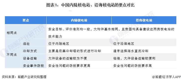 核電作為一種安全、清潔和高效的能源,是我國能源供給體系的重要分支。在我國,根據核電站選址的區別,可分為內陸核電站、沿海核電站。這兩類核電站在安全目標、評價準則均一致,核電站建設所需的大構件也基本相同,且我國也具備建設這兩類核電站的技術能力。不同的是,內陸核電站由于位于內陸地區,其安全性監控、防控的要求更高,另在設備運輸和冷卻方式等方面也有所區別。