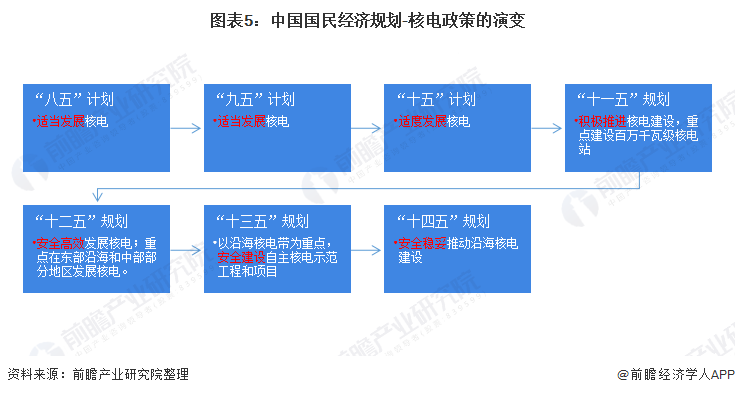 根據我國國民經濟“八五”計劃至“十四五”規劃,國家對核電行業的支持政策經歷了從“適當發展”到“積極推進發展”再到“安全穩妥發展”的變化。