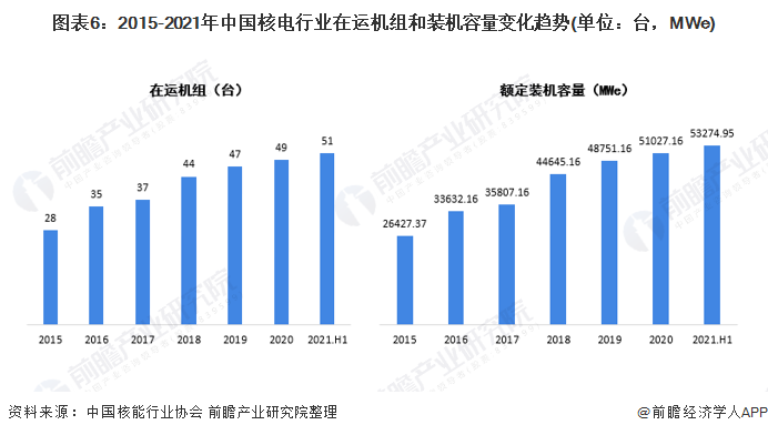 數據顯示,2015年以來,我國核電行業在運機組數量不斷增長、裝機容量穩步增長,2018年末,我國核電裝機容量突破40000Mwe;2019年,裝機容量突破50000Mwe。
