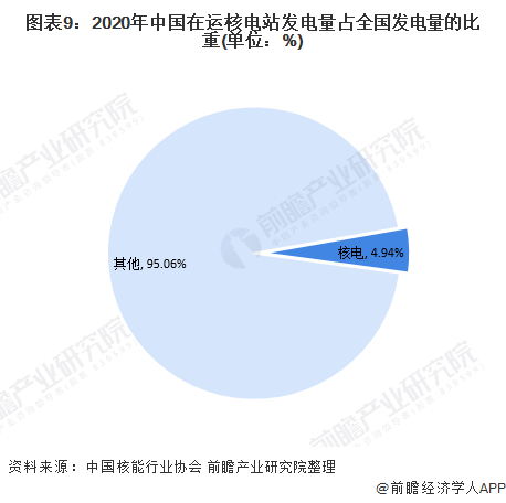 在核電站的生產運營方面,2020年,全國累計發電量為74170.40億千瓦時,運行核電機組累計發電量為3662.43億千瓦時,占全國累計發電量的4.94%。