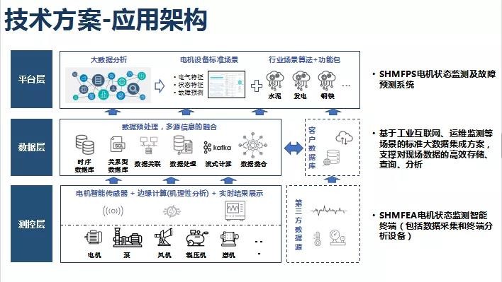 以工業互聯網核心技術為驅動,由電機狀態監測智能終端,電機狀態監測及故障預測系統軟件,以及支撐狀態監測和故障預測的算法和功能三部分組成的綜合系統平臺。