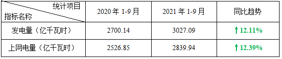 表2:2021年1-9月核電電力生產(chǎn)指標(biāo)統(tǒng)計(jì)表