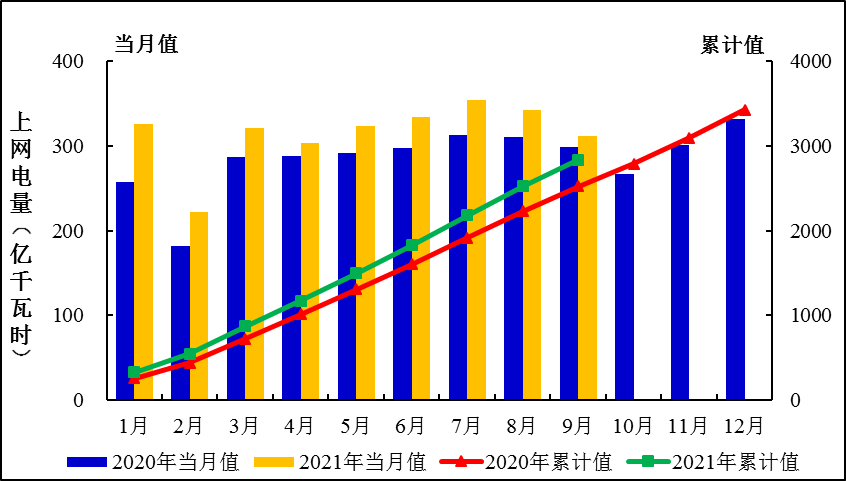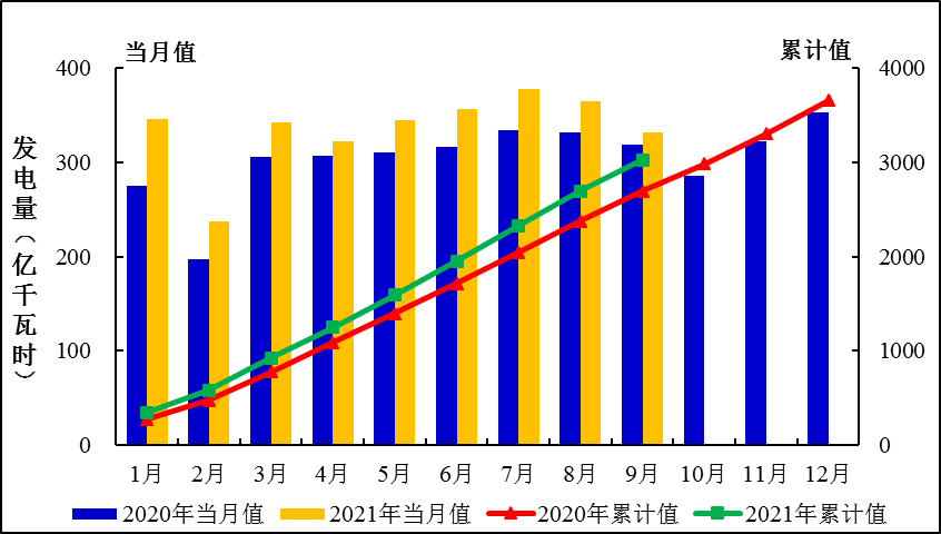 圖1:2021年1-9月全國(guó)發(fā)電量統(tǒng)計(jì)分布