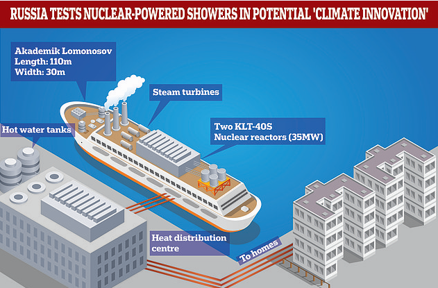 近日,據每日郵報消息,俄羅斯正在試驗使用“核溫水”,這些水從漂浮的反應堆中泵入西伯利亞偏遠城鎮人們的家中。
