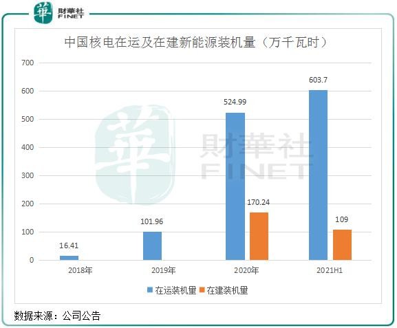 到了 2021 年上半年,中國核電在運裝機量達 603.69 萬千瓦時,擠進 A 股主要新能源運營企業前十名,進入行業第一梯隊。