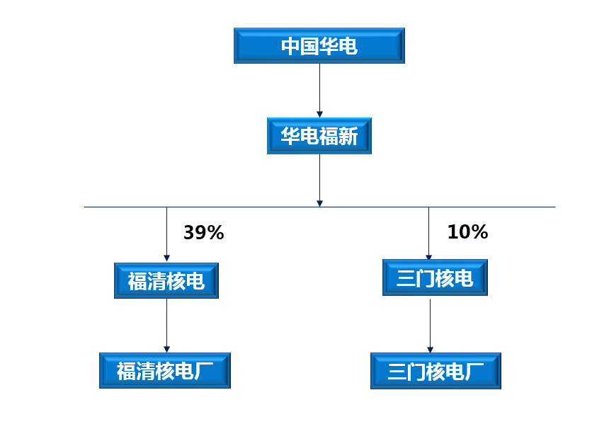 中國華電集團通過旗下上市平臺——華電福新能源股份有限公司(簡稱“華電福新”)分別持有福建福清核電有限公司(簡稱“福清核電”)和三門核電有限公司(簡稱“三門核電”)39%和10%股份,擁有福清核電和三門核電資產權益。