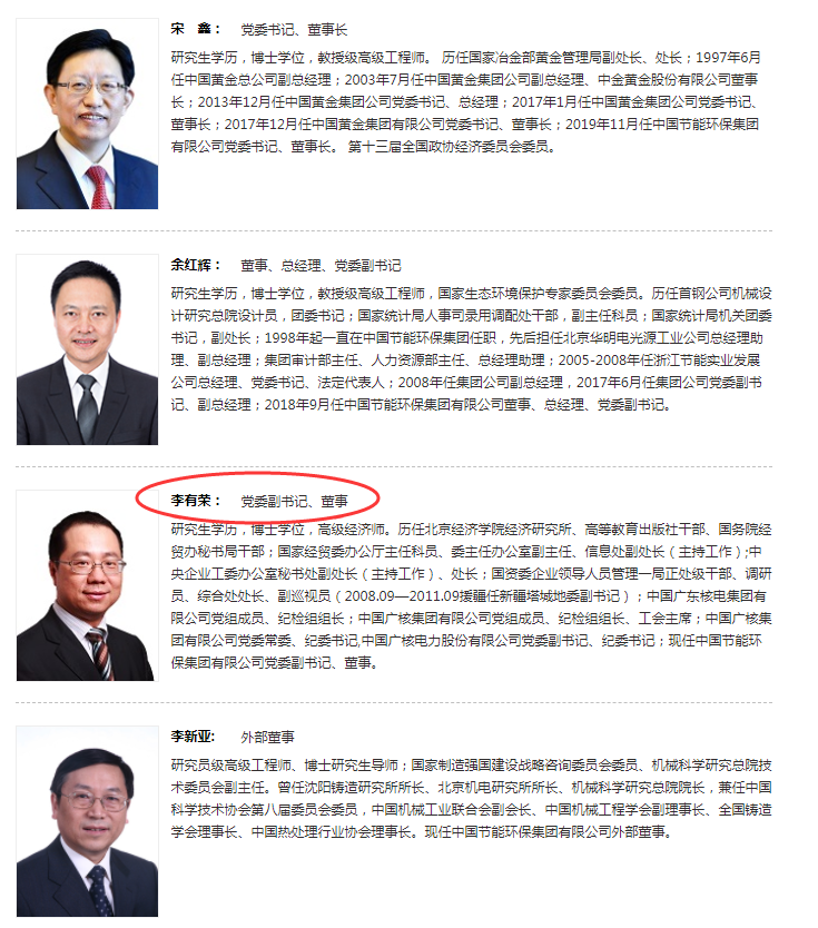 高立剛?cè)沃袕V核黨委副書(shū)記、董事,提名為中廣核總經(jīng)理人選,楊長(zhǎng)利不再擔(dān)任中廣核總經(jīng)理職務(wù)。李歷任中廣核黨委副書(shū)記、董事。免去李有榮中廣核黨委常委、紀(jì)委書(shū)記職務(wù),交流到其他中央企業(yè)任職。現(xiàn)李有榮已任中國(guó)節(jié)能環(huán)保集團(tuán)有限公司(簡(jiǎn)稱“中國(guó)節(jié)能”)黨委副書(shū)記、董事。